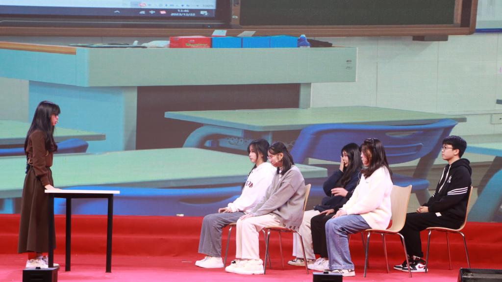 第三篇章中,校声乐社带来合唱《好想爱这个世界啊》用最真诚的歌声,为每一个观众带来温暖的抚慰。心理剧《成为你的一天》惟妙惟肖的表演,向同学们传达了“与其羡慕他人,不如做最好的自己”的道理,发人深思。礼仪时装秀《最炫民族风》将少数民族服装和礼仪深度融合,传承礼仪之风,浸润文明校园,展现了中华民族一家亲。教工合唱《如愿》悠扬的歌声里饱含着中国人血脉里割舍不了的情感,老师们将歌曲中传递的亲情与家国情唱进了观众们的内心。最后,洪建宗、于洁老师献唱《祝福中国》,高亢而优美的旋律,激励着师生在新征程中踔厉奋发,再竞风流。至此,晚会圆满结束。