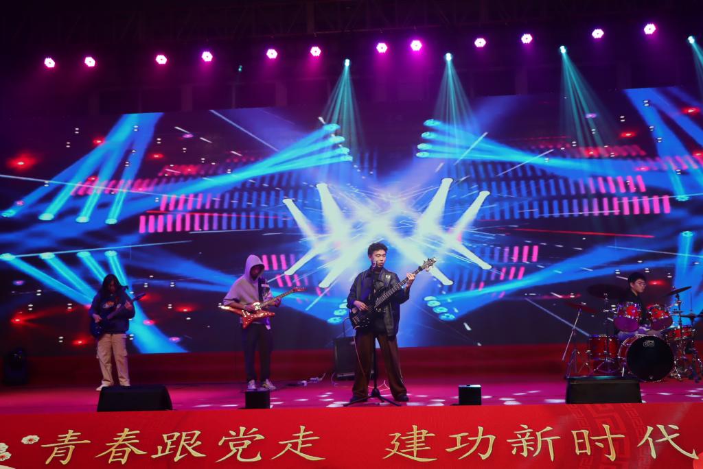 晚会在鼓乐齐鸣的开场舞《龙行龘龘》中拉开帷幕。晚会分为“忆往昔传承中国魂”、“看今朝青春正当时”、“向未来逐梦新时代”三个篇章,涵盖了舞蹈、合唱、情景剧、光影剧、乐队演奏、礼仪走秀等各具特色、形式多样的表演形式。在第一篇章中,李祺和黄展昕老师带来的歌曲《老男孩》,唱出了对青春的深深眷恋,现场掌声不断。《决爱·尽》悠扬的旋律,让人回味无穷;舞蹈《花腰傣》、歌伴舞《春庭雪》舞姿优美,展现了中国传统文化的魅力与底蕴;校主持人社朗诵节目《以青春的名义犒赏每一颗奋斗的中国心》致敬革命先辈,表达了新时代福铁学子热爱祖国的诚挚情感。