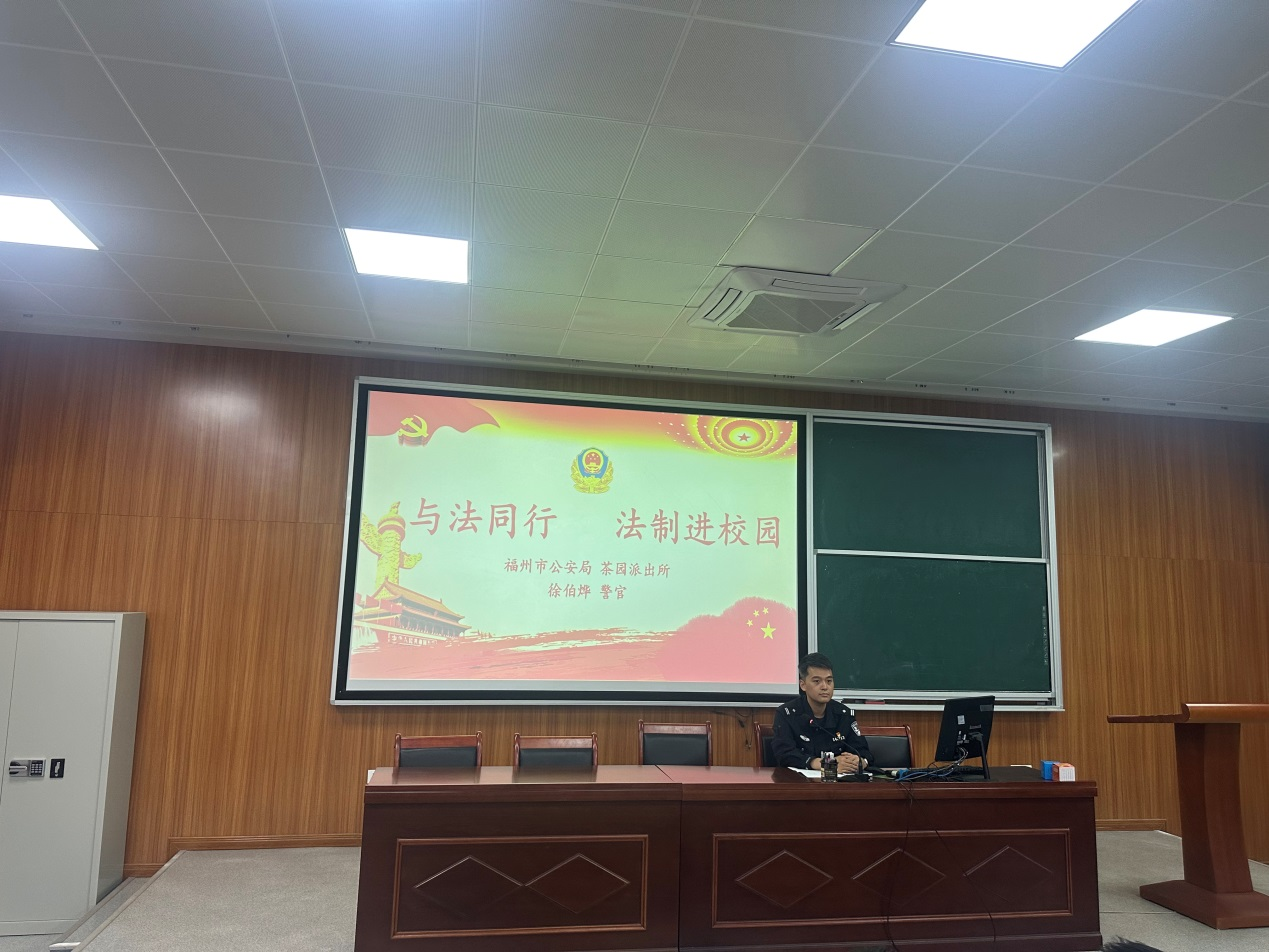 为切实增强青少年法治意识,促进学生健康成长,营造良好的法治教育氛围,4月23日下午,我校特邀福州市公安局茶园派出所徐伯烨警官来校进行法制教育讲座。