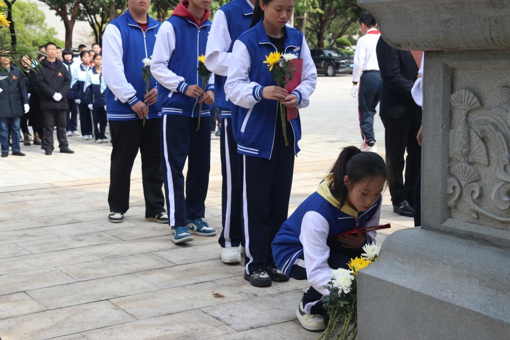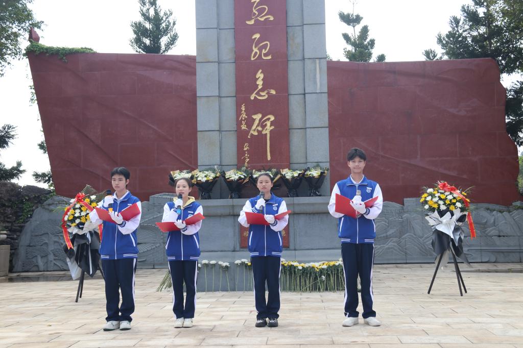 诵先烈事迹,传红色精神。少先队员和我校团员代表分别用真挚的情感和铿锵有力的语言朗诵了诗歌《中华少年》和《青春中国》,表达了对革命先烈的敬佩之情,师生们深刻地感受到了革命英烈的崇高精神,更加明确了青年肩负的历史使命。