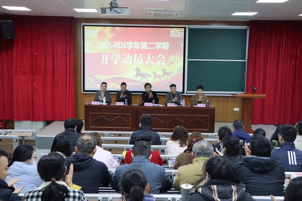 律回春渐,新元肇启。为全面总结上一学年办学成果,科学谋划新学期各项工作,3月6日,我校在新阶梯教室召开2025—2026学年第二学期开学动员大会。全体教职员工参加会议,学校领导班子成员出席会议并作动员讲话。
