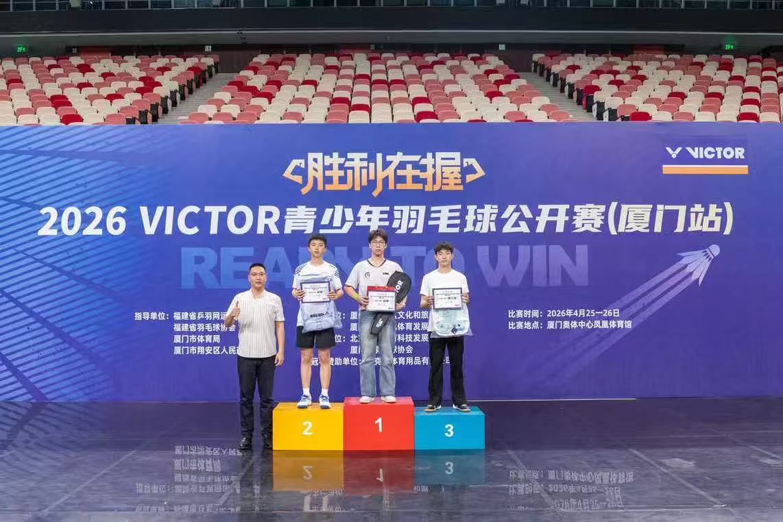 热烈祝贺我校25TX1班袁文星同学,在2026年VICTOR青少年羽毛球公开赛(厦门站)中,凭借过硬实力与顽强拼搏,奋勇争先,力挫群雄,荣获F组男子单打冠军。