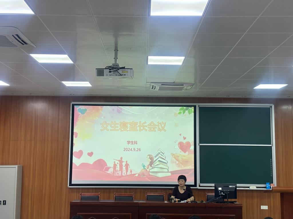 为进一步加强学生宿舍管理,促进寝室成员之间的沟通与理解,营造安全和谐的住宿氛围,9月27下午,我校于博厚楼阶梯教室召开新学期全校女生寝室长会议。会议由学生科副科长王明忠主持,副校长汪媚、及全校女生宿舍寝室长参会。