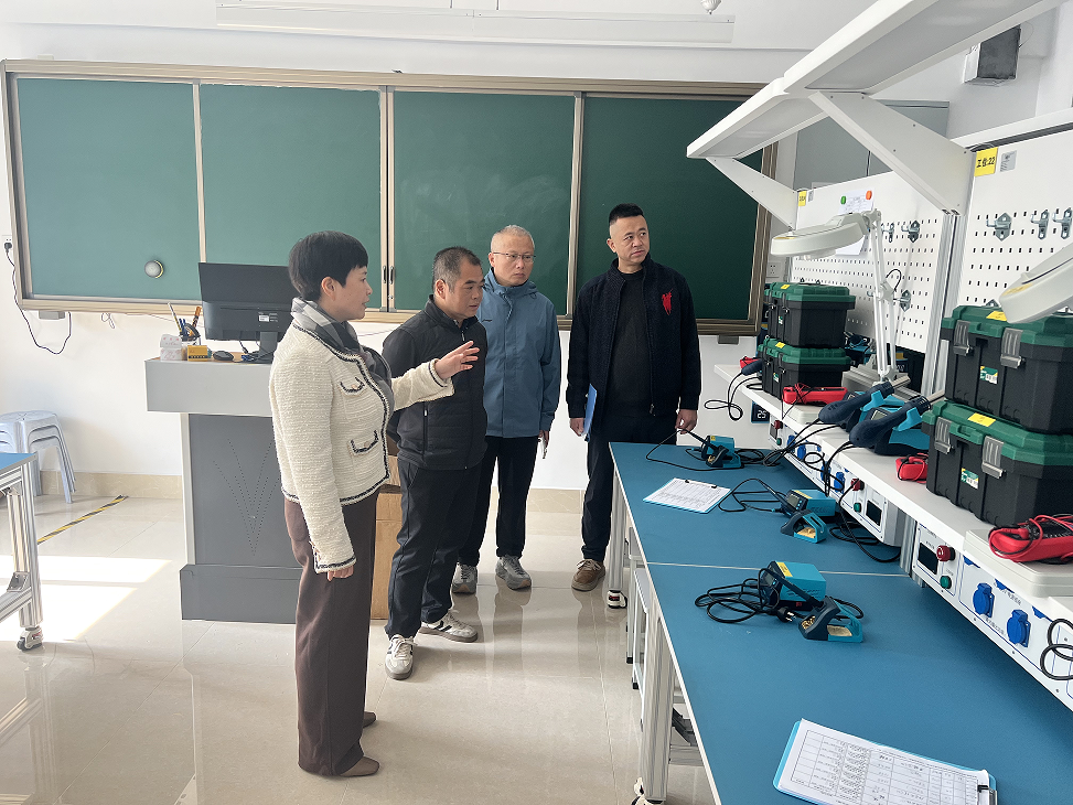检查组一行先后前往电工实训室、电子综合实验室等场所,重点对实训设备运行状态、安全操作规程执行情况、消防设施配备与有效性、应急疏散通道畅通情况等进行全面细致排查。每到一处,检查组认真听取场所责任人关于日常安全管理工作的汇报,交流设备维护保养、学生实训安全防护措施落实等情况,并现场查阅安全台账记录。
