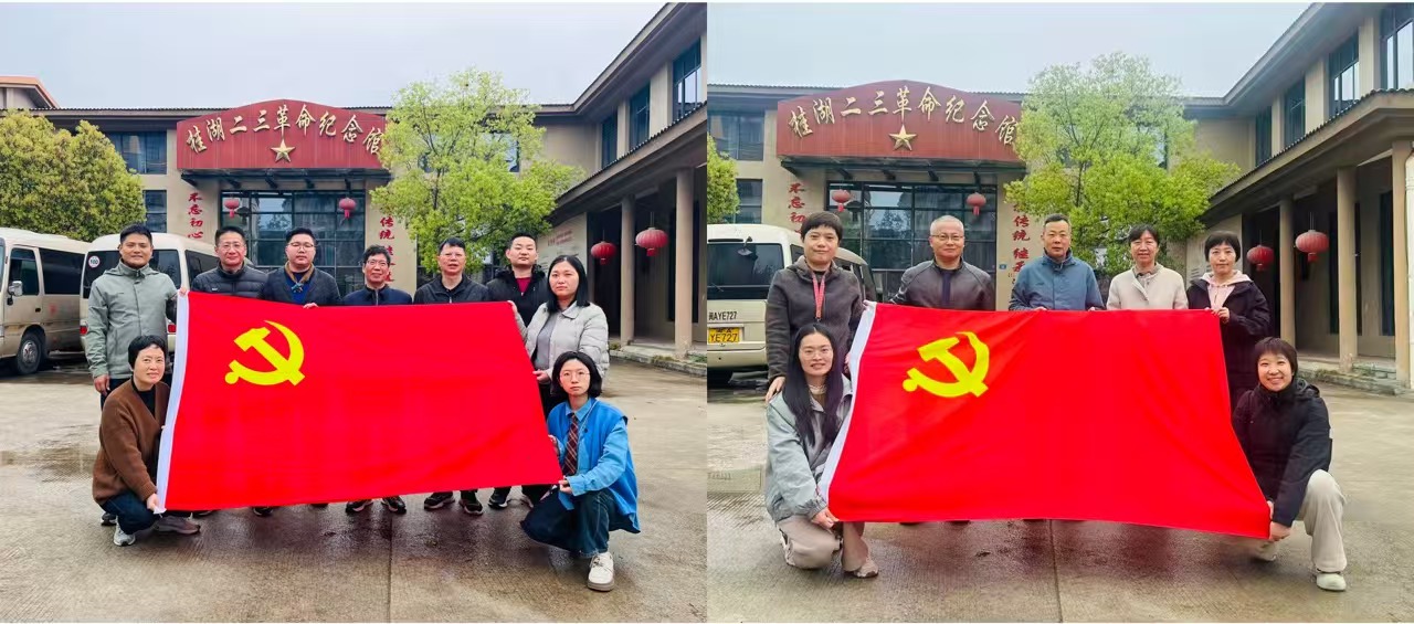 在解说员的带领下,党员们学习了大革命时期以张长弓为代表的进步青年,在党的领导下开展革命斗争、建立苏维埃红色政权、有力冲击国民党统治的那段风雨历程。随后,谢一中从职业教育“匠心育人”的当代使命出发,现场讲授《从桂湖斗争看基层党建的作用》,引导大家在重温历史中触摸革命先辈的初心,涵养“甘于做铺垫性工作、甘于抓未成之事”的担当精神。返程途中,一行人踊跃讨论,立足当前、着眼长远,展现出积极进取的精神风貌。
