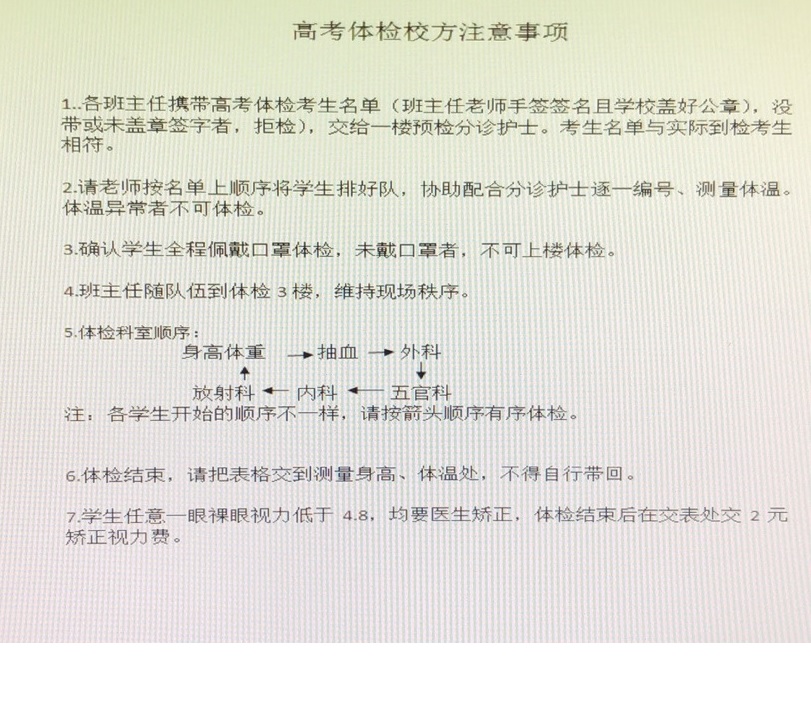 高中、中职、中技学校一定要按体检医院要求,做到相关注意事项(见下图),保证体检顺利进行。