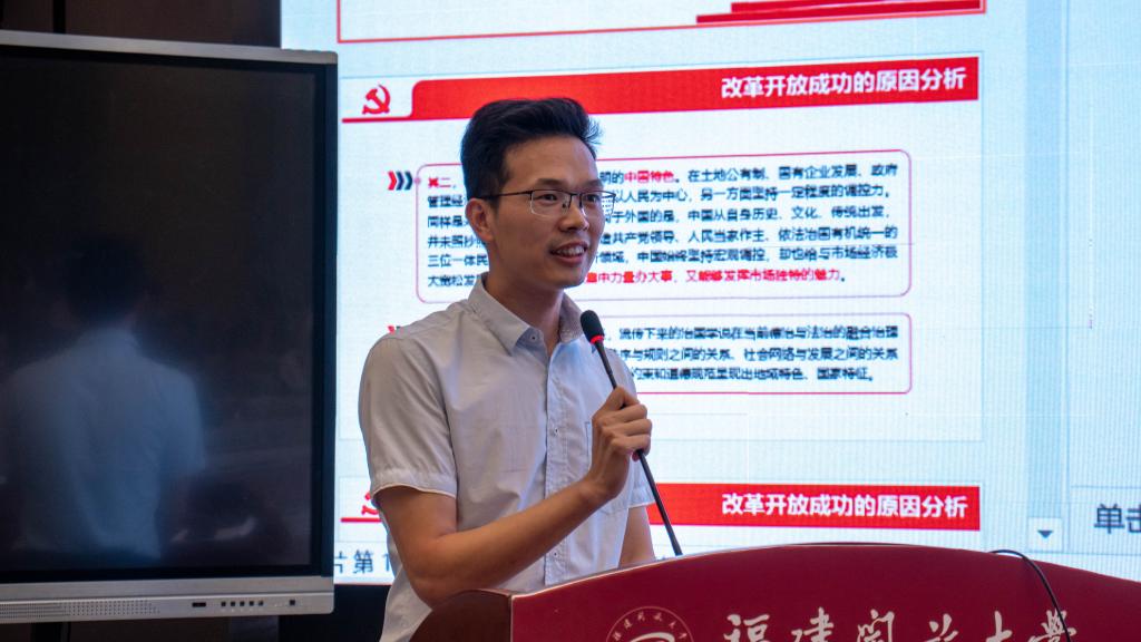 第一节团课由福建开放大学团委书记黄生春带领学员学习《了解团史、校史——做新时代的好青年》。培训过程中,他向学生们介绍了中国共产主义青年团的诞生背景和发展历程,勉励同学们充分发扬艰苦奋斗精神,在实现民族复兴的赛道上奋勇争先。
