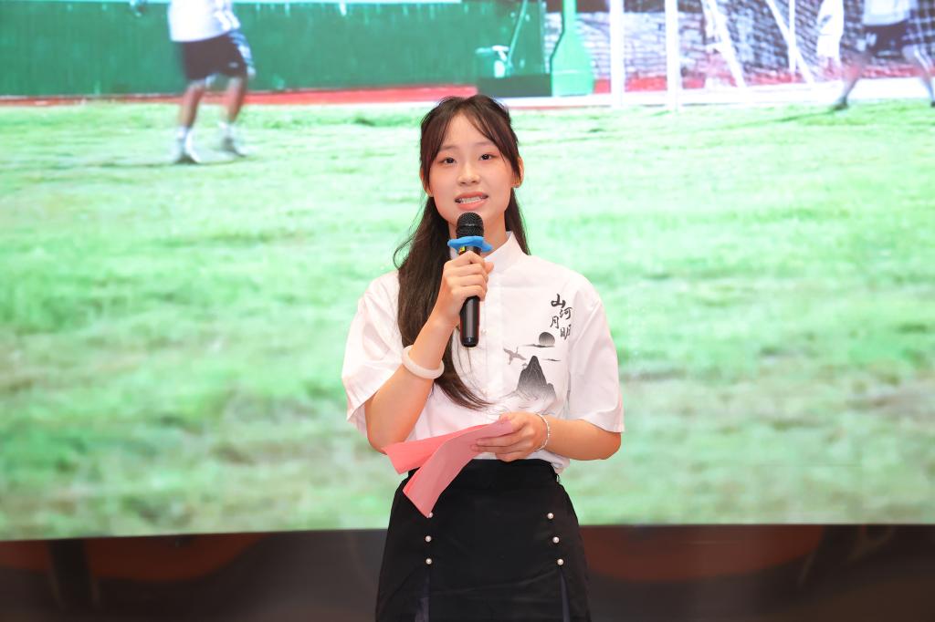 吴铭静同学以倒叙的形式,带领观众们回顾了党引领青年群体迈向国家富强的光辉历程。她借此契机,向开大青年学子们发出了诚挚的呼吁:要怀抱崇高理想,矢志不渝地将个人奋斗融入到国家的繁荣建设与发展大局之中,为实现强国建设、民族复兴伟业贡献青春力量。