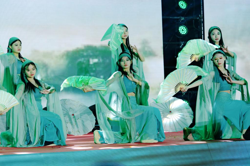 晚会当天,学校精心筹备的敦煌舞《沁莲》、国风舞《又见青白》、街舞串烧等节目在舞台上大放异彩,成为全场瞩目的焦点。舞者们以轻盈灵动的舞步和曼妙多姿的身姿,将敦煌舞的韵律美与情感表达得淋漓尽致,将敦煌壁画中的舞蹈形象生动再现于舞台上。国风舞则融合了传统神话故事与现代元素,巧妙地将古典舞与现代舞相结合,通过优美的舞姿与动人的旋律,传达出对传统文化的热爱与传承。街舞串烧节目则是本次汇演的又一亮点。我校师生以精湛的舞技和独特的创意,将多种街舞风格巧妙融合,展现出青春活力与时尚气息。