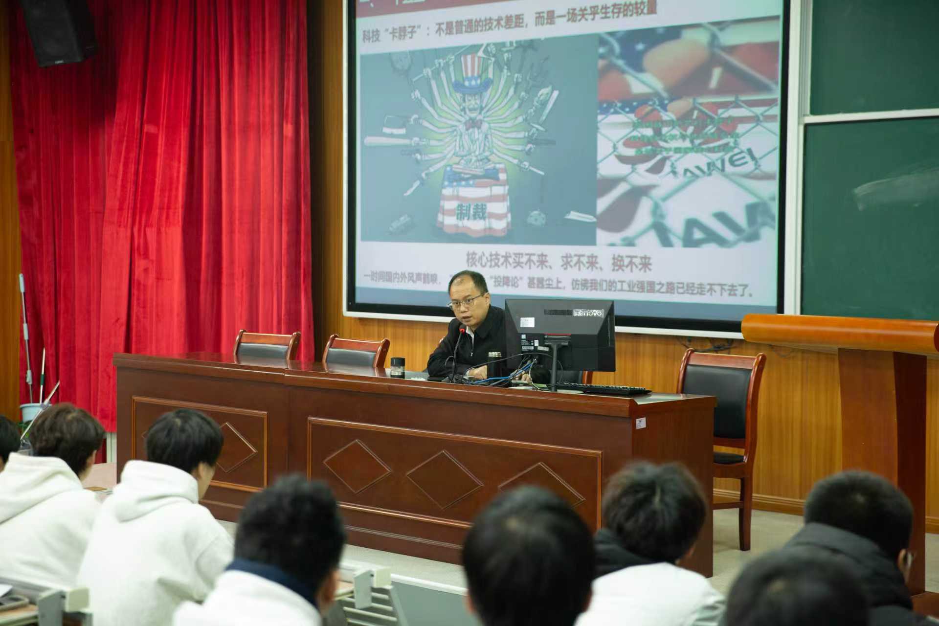 11月20日下午,我校举行党的二十届四中全会精神专题团课学习,福建理工大学范五三教授围绕全会核心内容,以中美贸易战为切入点,结合从“一五”到“十四五”的工业发展历程及重要历史案例,用鲜活史料和通俗表达,为我校23级团员送上了一堂兼具思想深度与感染力的“青春思政课”。