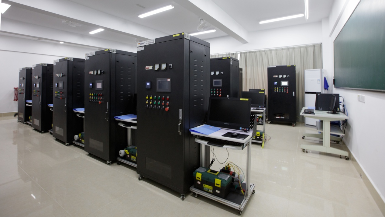 四、教学设施:学校建有电工实验室、电子实验室、电工实训室、电拖实训室、PLC实训室、电气控制综合实训室及模拟变电所等实验实训室。校外实训基地共建单位有福州供电段、泉州中车、厦门弘信电子科技集团股份有限公司等。
