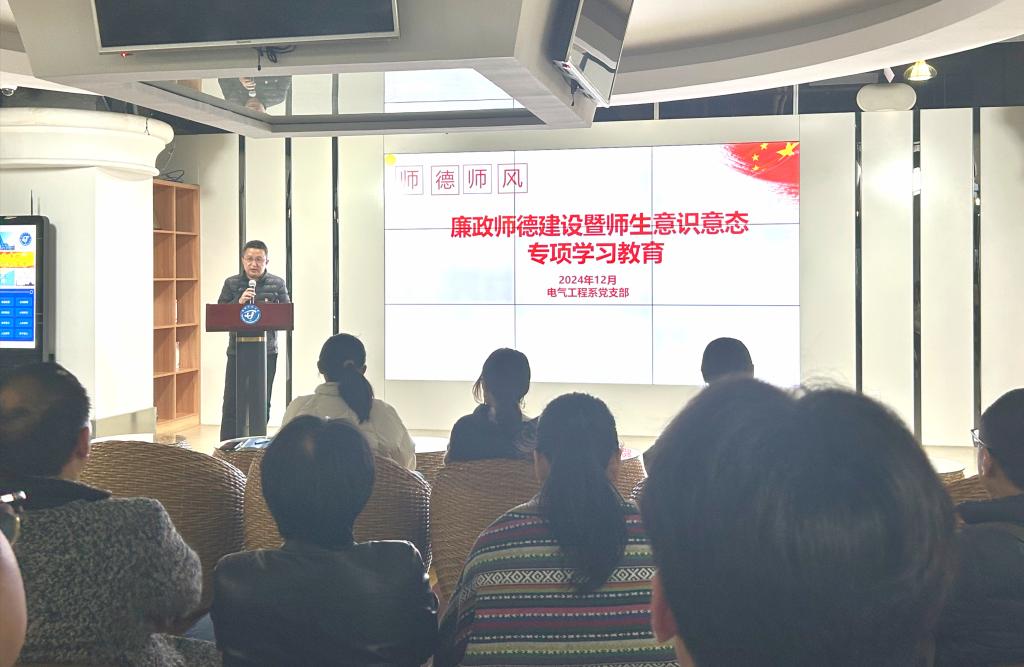 为深入学习贯彻习近平总书记在福建考察时的重要讲话精神,深化拓展“深学争优、敢为争先、实干争效”行动,12月12日下午,职业学院电气工程系党支部在明德楼三楼廉政文化教育中心开展以“坚定信心鼓足斗志,奋勇争先再上台阶”主题的党日活动。电气工程系党支部教职工及部分学生代表共同参加政治理论学习和廉政师德建设活动,支部书记赖海昌主持。