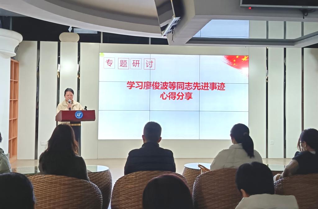 学先进,话感想。根据中共福建省委组织部《关于学习贯彻习近平总书记在福建考察时的重要讲话精神深入开展向谷文昌、廖俊波等同志学习活动的通知》文件精神,支部组织教职工观看了《俊波,您好!》专题纪录片。纪录片讲述了全国优秀县委书记廖俊波同志不忘初心、扎实工作、廉洁奉公,身体力行把党的方针政策落实到基层和群众中去,真心实意为人民造福的感人事迹。随后,支部党员宋淑娟、预备党员郭丽祥、苏斌、何佳四位同志分别结合个人实际分享了学习体会。