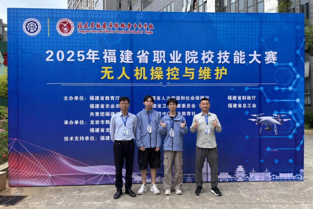 4月12-13日,2025年福建省职业院校技能大赛无人机操控与维护赛项在龙岩开赛。我校参赛学生陈栎岩、邱嘉鸿在指导老师何国辉、王招的带领下,顺利完成比赛,并获三等奖。