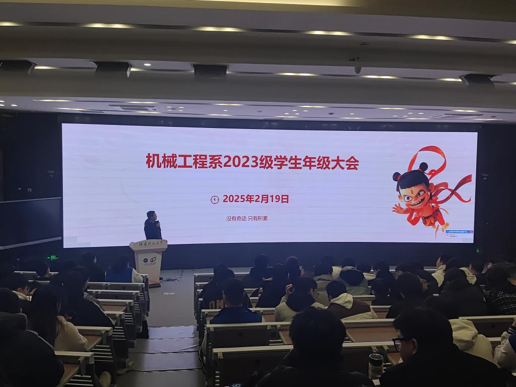 为帮助学生快速适应新学期校园生活,调整学习节奏,2月19日下午,我校机械工程系在智慧教室召开了2023级学生年级大会,系书记谢友奇出席会议并作主题发言。