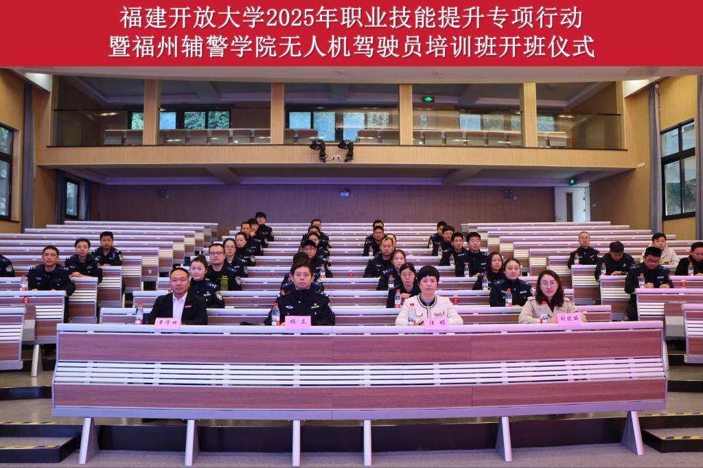 12月29日上午,我校组织开展的福建开放大学2025年职业技能提升专项行动暨福州辅警学院无人机驾驶员培训班开班仪式在桂山校区智慧教室举行。副校长汪媚、福建开放大学理工学院(辅警学院)副院长章学珠,以及我校与福州市公安局相关科室负责人、36名辅警学员参加。